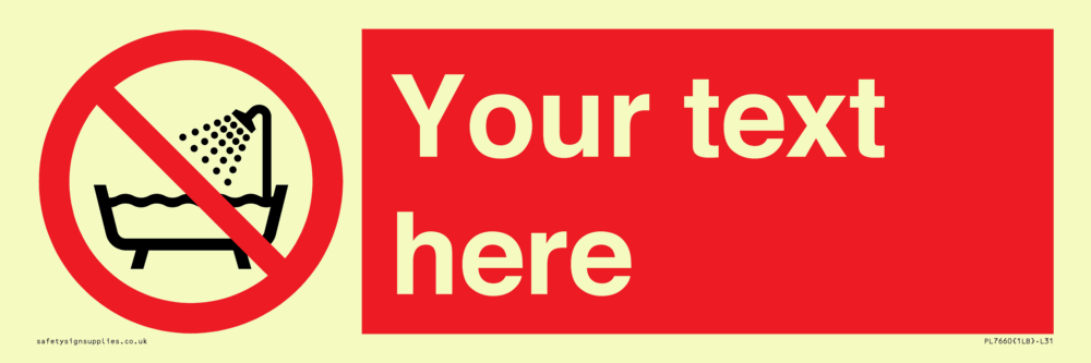 Suitable for mounting on a door. Suitable for mounting on cladding. This product is design to be mounted on the ceiling. Custom signs contain the text required by the customer. With your your text and a standard safety sign symbol - a bespoke sign can fit any requirement. Signs in this range are from our standard range.