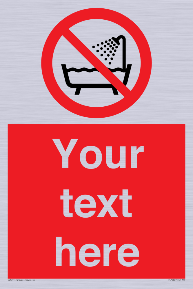 Suitable for hanging installation. Suitable for mounting on a flat surface. Suitable for mounting on a door. Custom signs contain the text required by the customer. With your your text and a standard safety sign symbol - a bespoke sign can fit any requirement. Signs in this range are from our standard range.