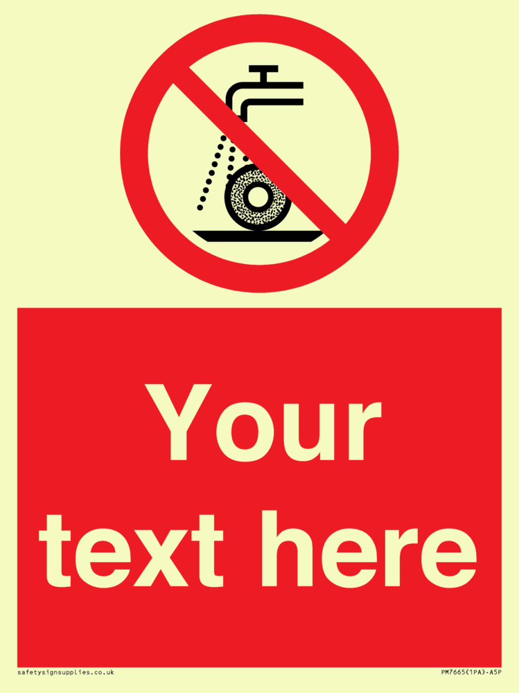 Suitable for mounting on a door. Suitable for mounting on cladding. This product is design to be mounted on the ceiling. Custom signs contain the text required by the customer. With your your text and a standard safety sign symbol - a bespoke sign can fit any requirement. Signs in this range are from our standard range.