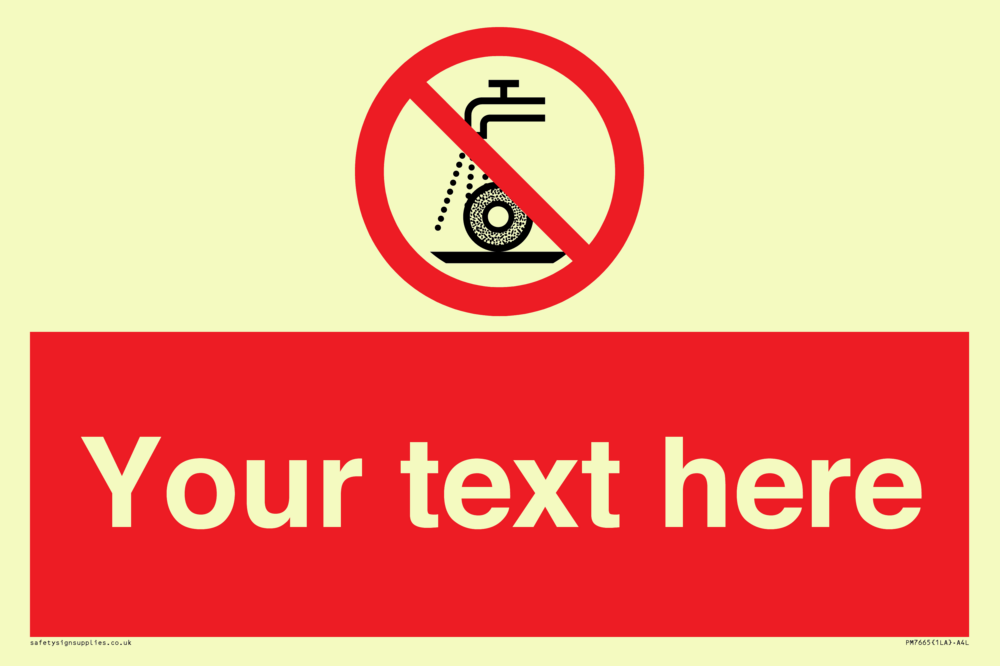 Suitable for mounting on a door. Suitable for mounting on cladding. This product is design to be mounted on the ceiling. Custom signs contain the text required by the customer. With your your text and a standard safety sign symbol - a bespoke sign can fit any requirement. Signs in this range are from our standard range.
