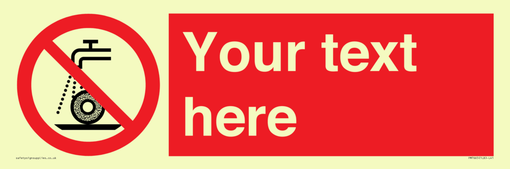 Suitable for mounting on a door. Suitable for mounting on cladding. This product is design to be mounted on the ceiling. Custom signs contain the text required by the customer. With your your text and a standard safety sign symbol - a bespoke sign can fit any requirement. Signs in this range are from our standard range.
