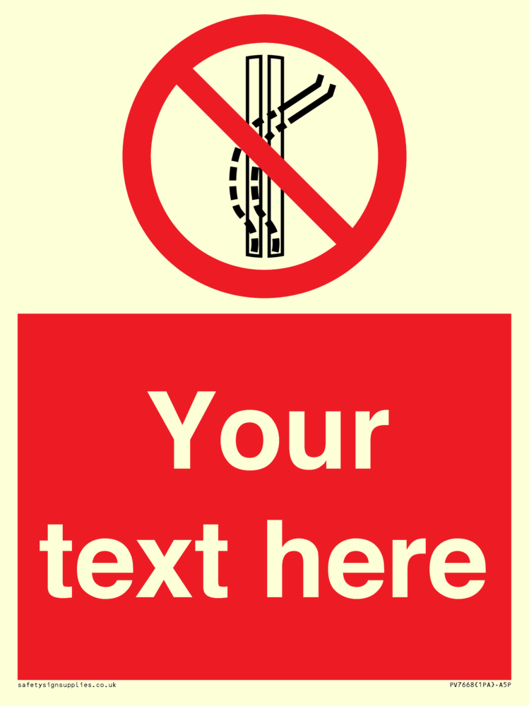 Suitable for mounting on a smooth surface Suitable for mounting on a flat surface. Custom signs contain the text required by the customer. With your your text and a standard safety sign symbol - a bespoke sign can fit any requirement.