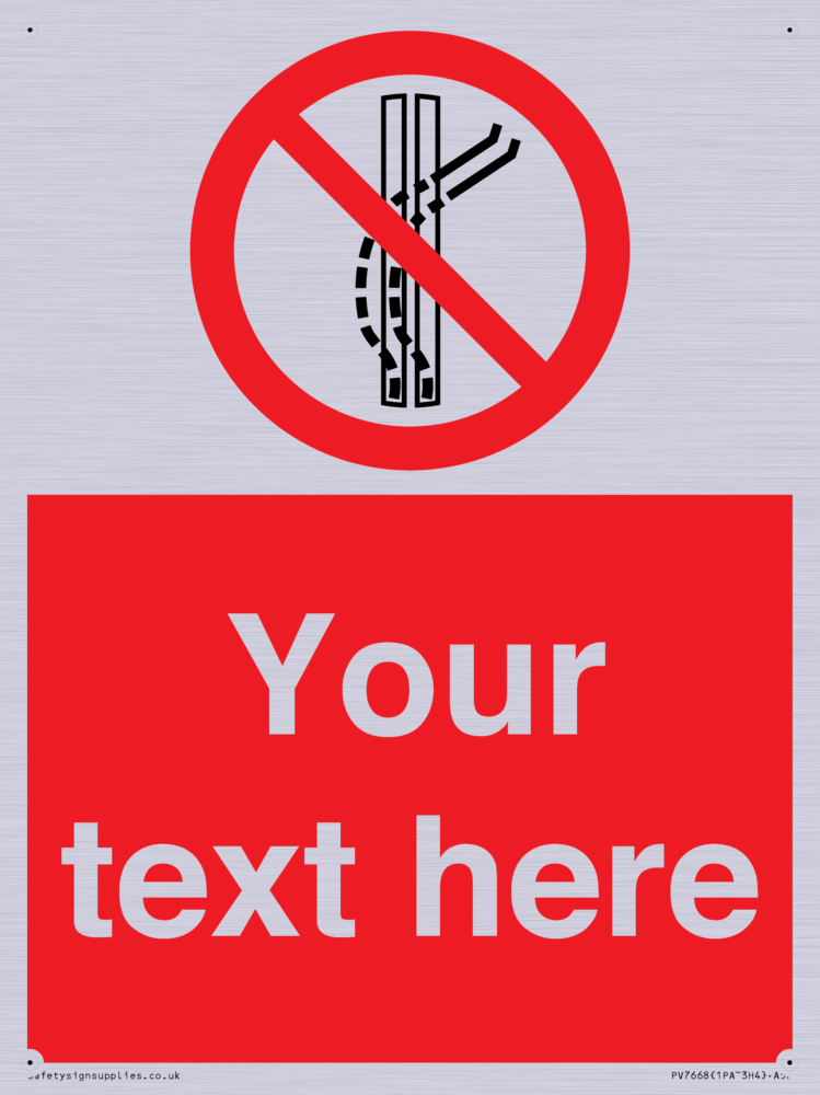This product is a prohibition safety sign. This type of sign tells you something you must not do.