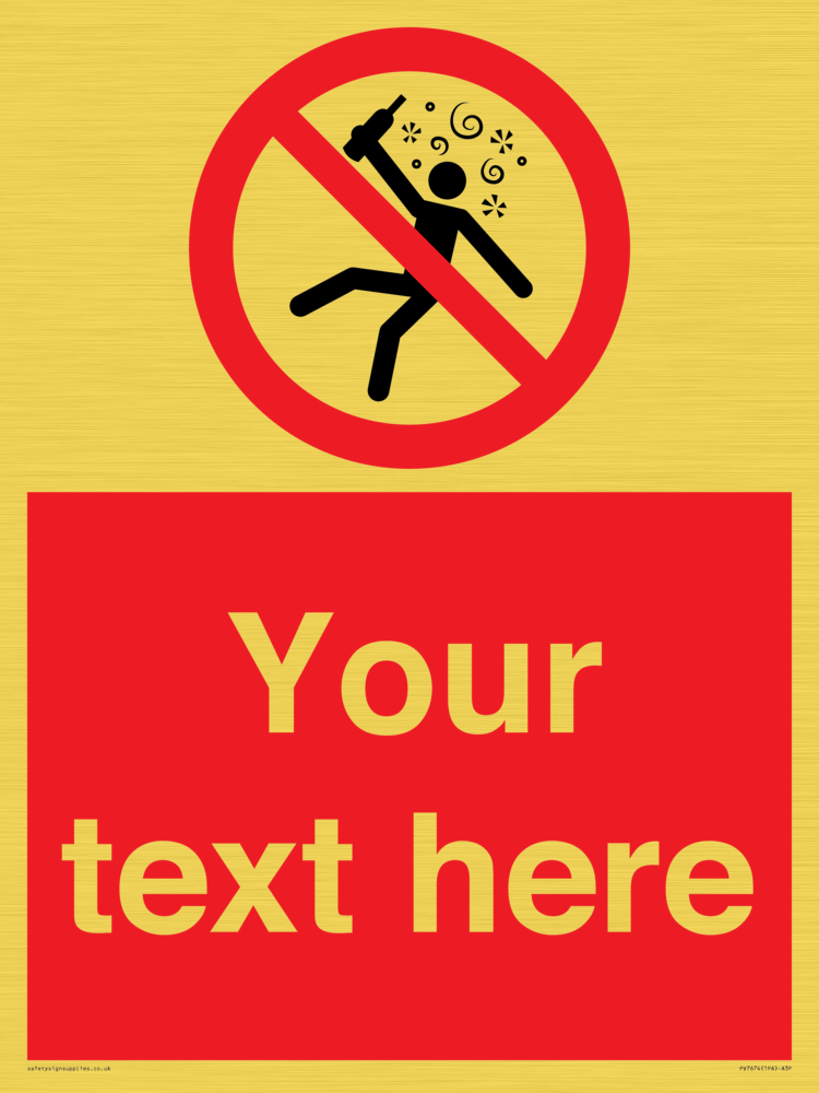 Suitable for hanging installation. Suitable for mounting on a flat surface. Suitable for mounting on a door. Custom signs contain the text required by the customer. With your your text and a standard safety sign symbol - a bespoke sign can fit any requirement.