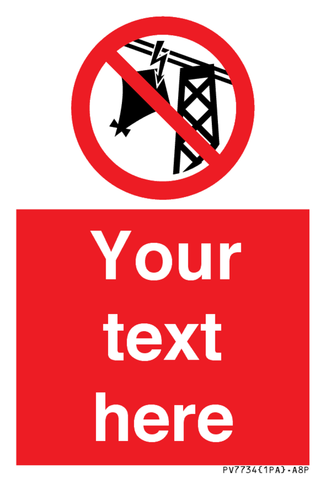 Suitable for mounting on a door. Suitable for mounting on cladding. This product is design to be mounted on the ceiling. Custom signs contain the text required by the customer. With your your text and a standard safety sign symbol - a bespoke sign can fit any requirement. Signs in this range are from our maximum choice range. Giving you the most choice of signs available in the UK.