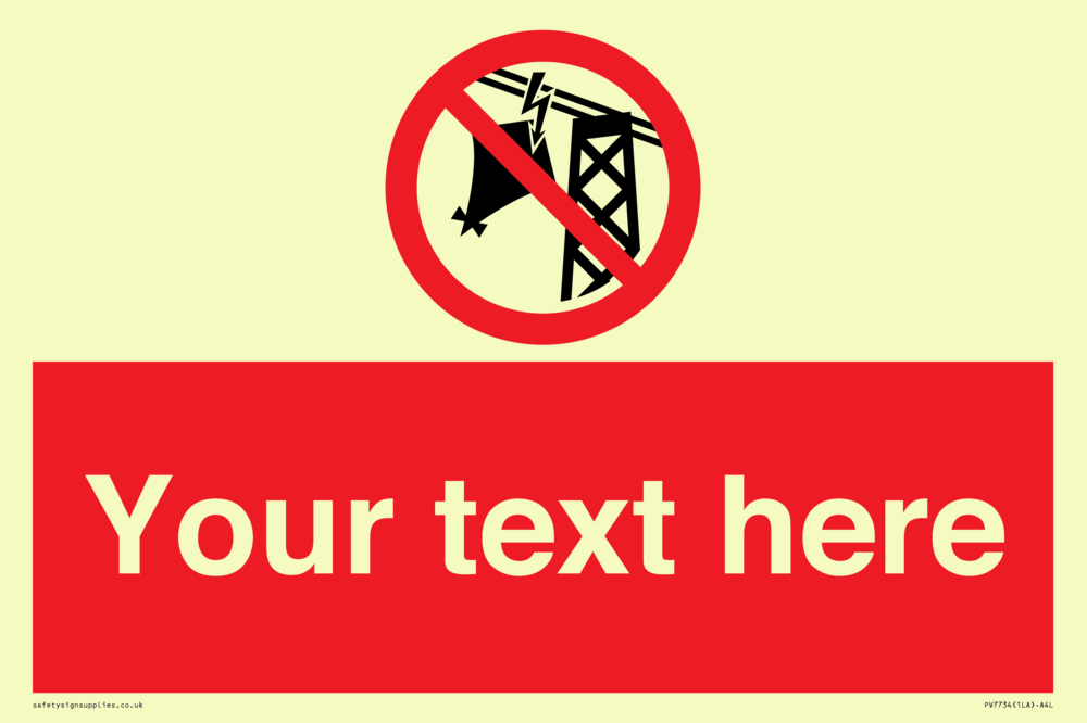 Suitable for mounting on a door. Suitable for mounting on cladding. This product is design to be mounted on the ceiling. Custom signs contain the text required by the customer. With your your text and a standard safety sign symbol - a bespoke sign can fit any requirement. Signs in this range are from our maximum choice range. Giving you the most choice of signs available in the UK.