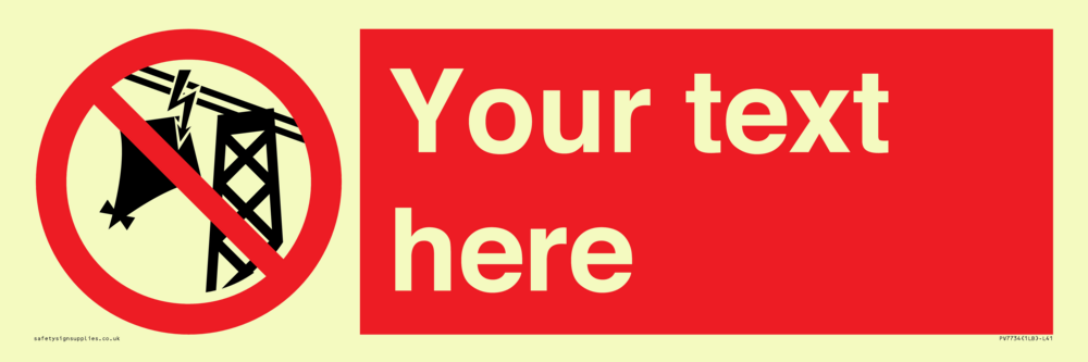 Suitable for mounting on a door. Suitable for mounting on cladding. This product is design to be mounted on the ceiling. Custom signs contain the text required by the customer. With your your text and a standard safety sign symbol - a bespoke sign can fit any requirement. Signs in this range are from our maximum choice range. Giving you the most choice of signs available in the UK.
