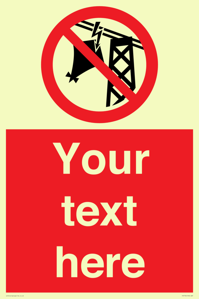 Suitable for mounting on a door. Suitable for mounting on cladding. This product is design to be mounted on the ceiling. Custom signs contain the text required by the customer. With your your text and a standard safety sign symbol - a bespoke sign can fit any requirement. Signs in this range are from our maximum choice range. Giving you the most choice of signs available in the UK.