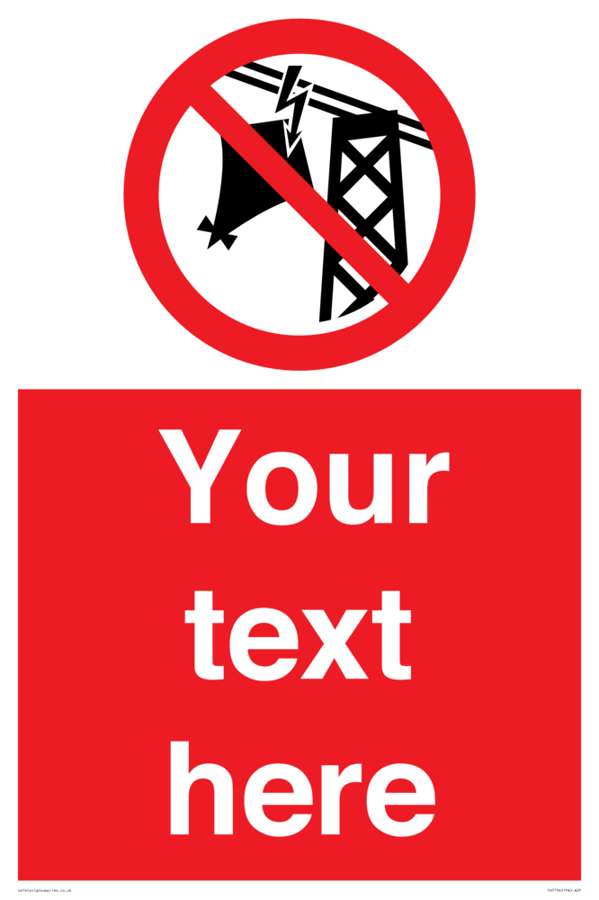 Suitable for mounting on a flat surface. Suitable for mounting on a door. Suitable for mounting on cladding. This product is design to be mounted on the ceiling. Custom signs contain the text required by the customer. With your your text and a standard safety sign symbol - a bespoke sign can fit any requirement.