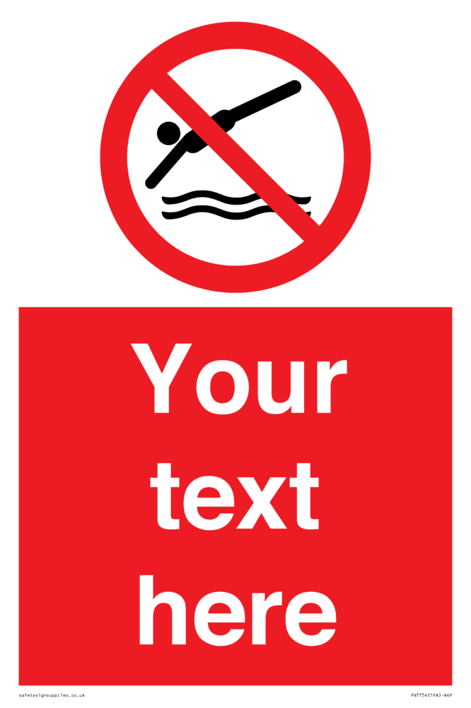 Suitable for mounting on a flat surface. Suitable for mounting on a door. Suitable for mounting on cladding. This product is design to be mounted on the ceiling. Custom signs contain the text required by the customer. With your your text and a standard safety sign symbol - a bespoke sign can fit any requirement.