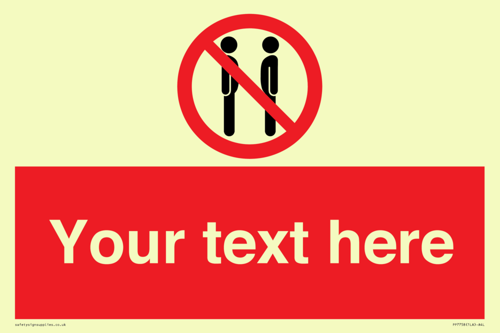 Suitable for mounting on a door. Suitable for mounting on cladding. This product is design to be mounted on the ceiling. Custom signs contain the text required by the customer. With your your text and a standard safety sign symbol - a bespoke sign can fit any requirement. Signs in this range are from our maximum choice range. Giving you the most choice of signs available in the UK.