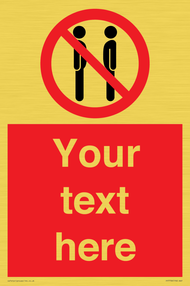 Suitable for hanging installation. Suitable for mounting on a flat surface. Suitable for mounting on a door. Custom signs contain the text required by the customer. With your your text and a standard safety sign symbol - a bespoke sign can fit any requirement. Signs in this range are from our maximum choice range. Giving you the most choice of signs available in the UK.