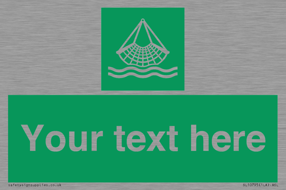E928 Safe condition: Person overboard equipment symbol. To indicate the location of person overboard / man overboard equipment. Commonly known as a Jasons Cradle.