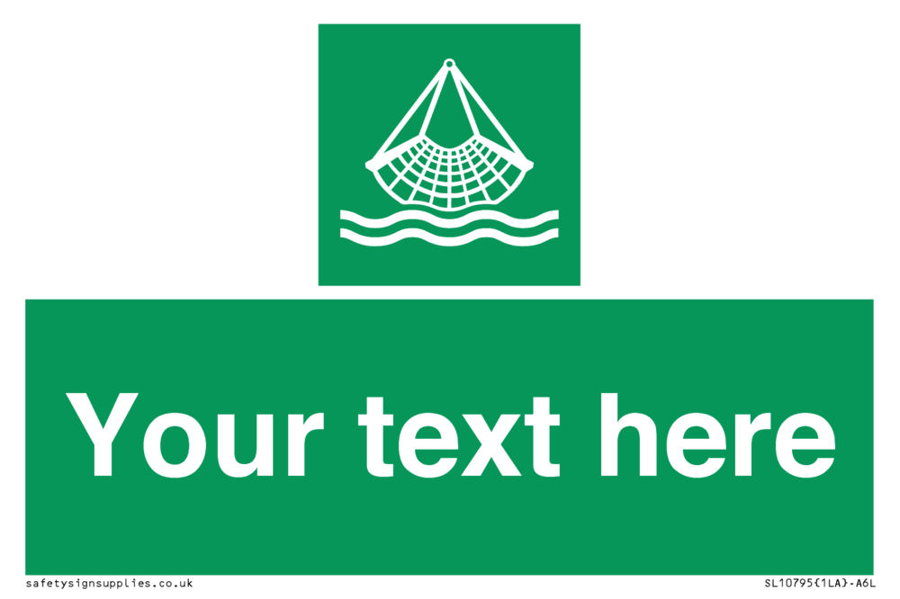 E928 Safe condition: Person overboard equipment symbol. To indicate the location of person overboard / man overboard equipment. Commonly known as a Jasons Cradle.