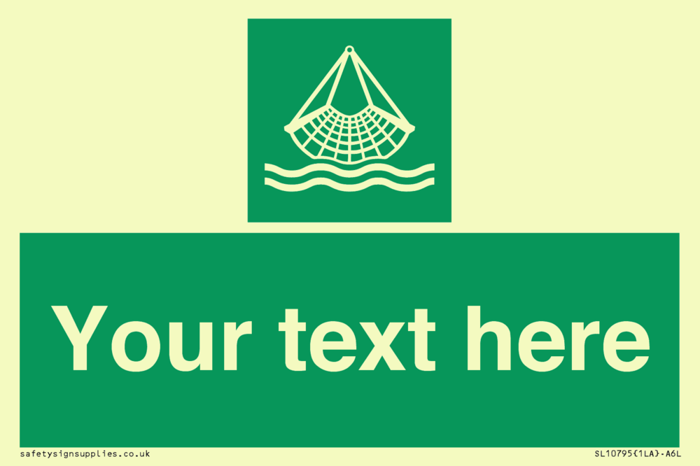 E928 Safe condition: Person overboard equipment symbol. To indicate the location of person overboard / man overboard equipment. Commonly known as a Jasons Cradle.