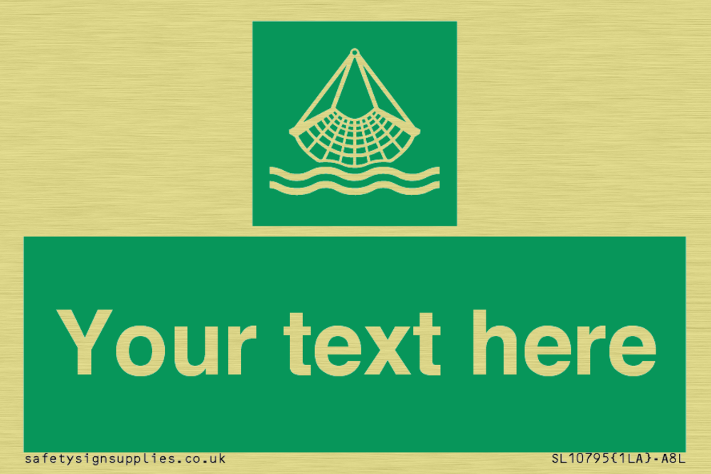 E928 Safe condition: Person overboard equipment symbol. To indicate the location of person overboard / man overboard equipment. Commonly known as a Jasons Cradle.