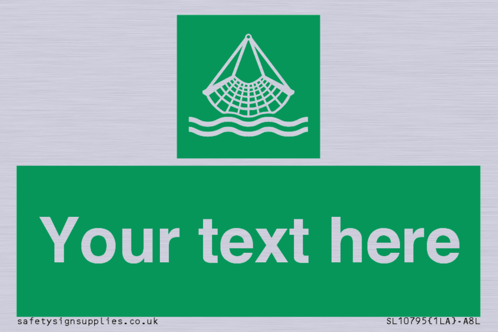 E928 Safe condition: Person overboard equipment symbol. To indicate the location of person overboard / man overboard equipment. Commonly known as a Jasons Cradle.