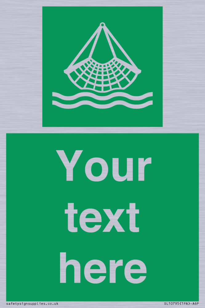 E928 Safe condition: Person overboard equipment symbol. To indicate the location of person overboard / man overboard equipment. Commonly known as a Jasons Cradle.