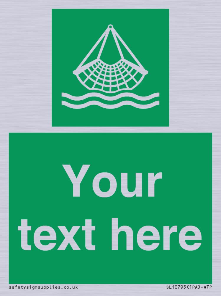 E928 Safe condition: Person overboard equipment symbol. To indicate the location of person overboard / man overboard equipment. Commonly known as a Jasons Cradle.