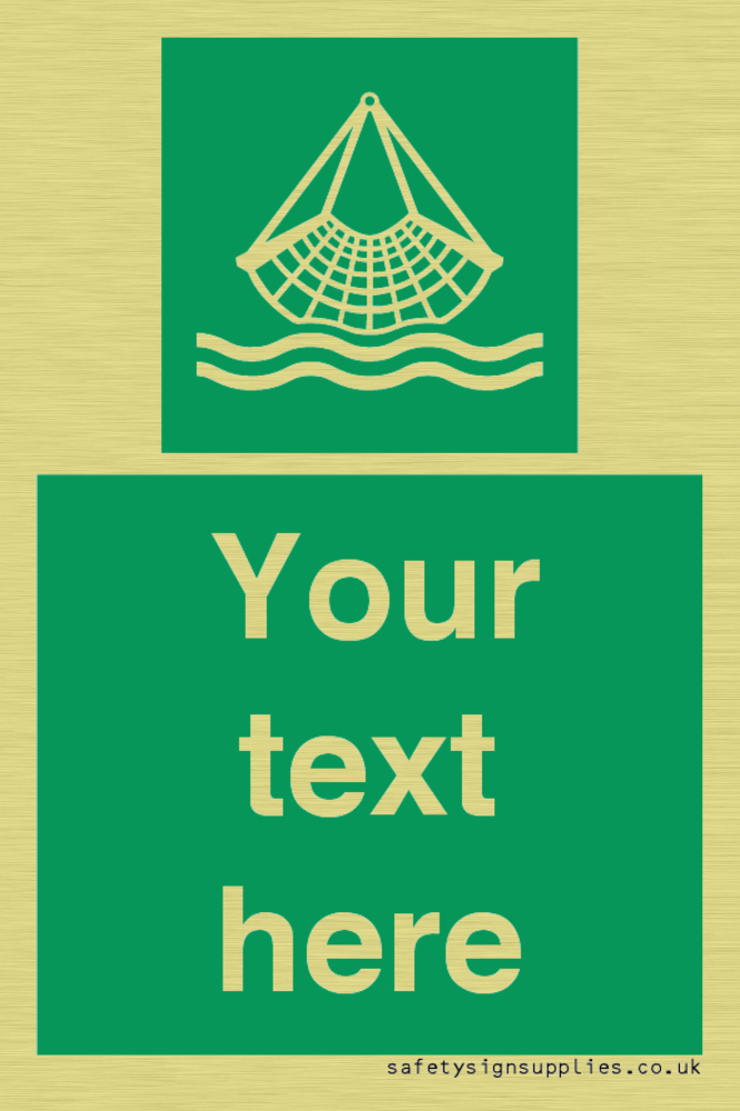 E928 Safe condition: Person overboard equipment symbol. To indicate the location of person overboard / man overboard equipment. Commonly known as a Jasons Cradle.