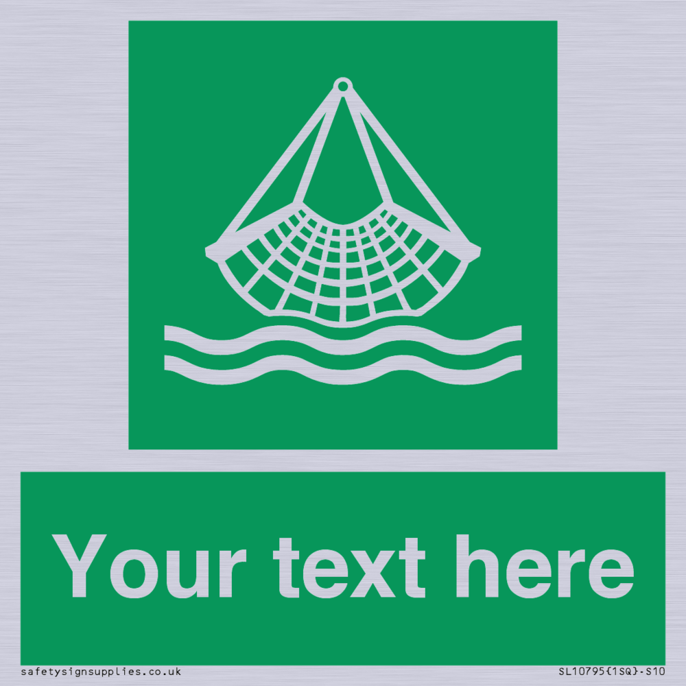 E928 Safe condition: Person overboard equipment symbol. To indicate the location of person overboard / man overboard equipment. Commonly known as a Jasons Cradle.