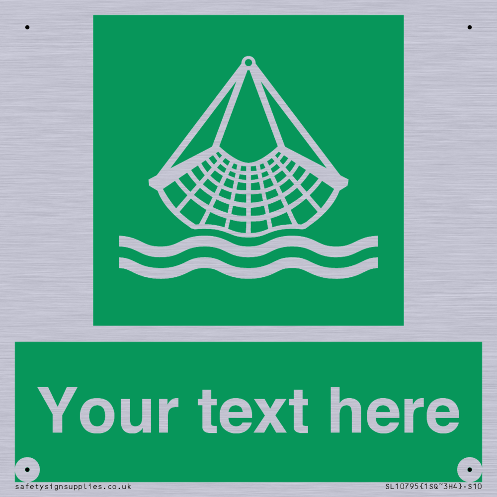 E928 Safe condition: Person overboard equipment symbol. To indicate the location of person overboard / man overboard equipment. Commonly known as a Jasons Cradle.