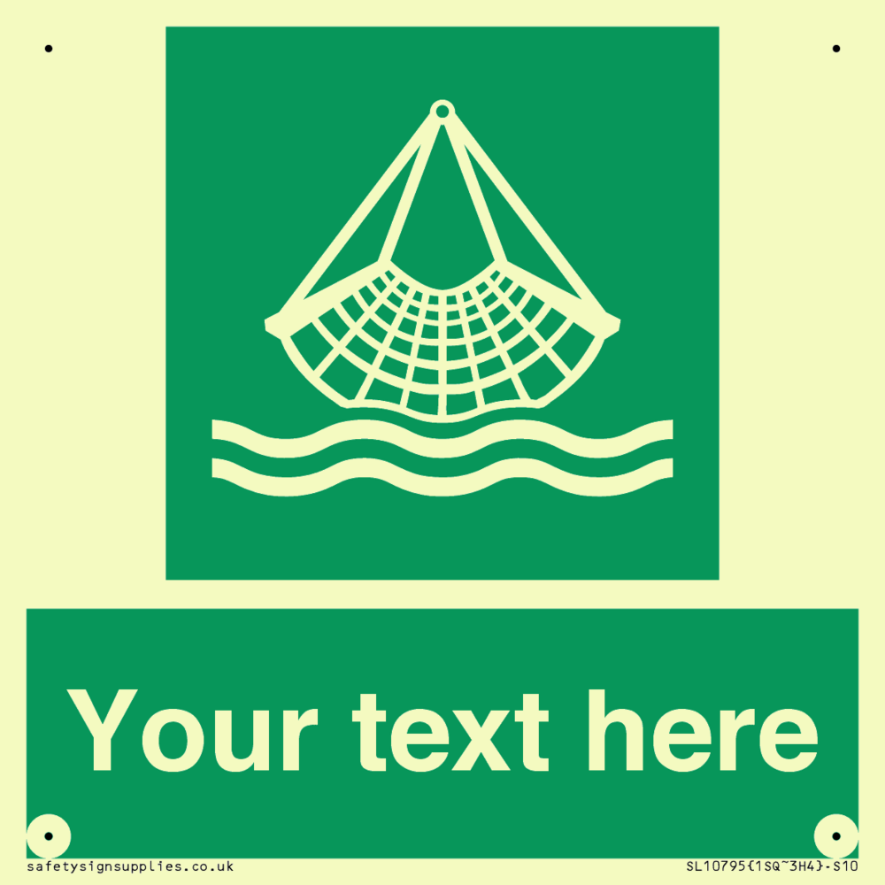 E928 Safe condition: Person overboard equipment symbol. To indicate the location of person overboard / man overboard equipment. Commonly known as a Jasons Cradle.