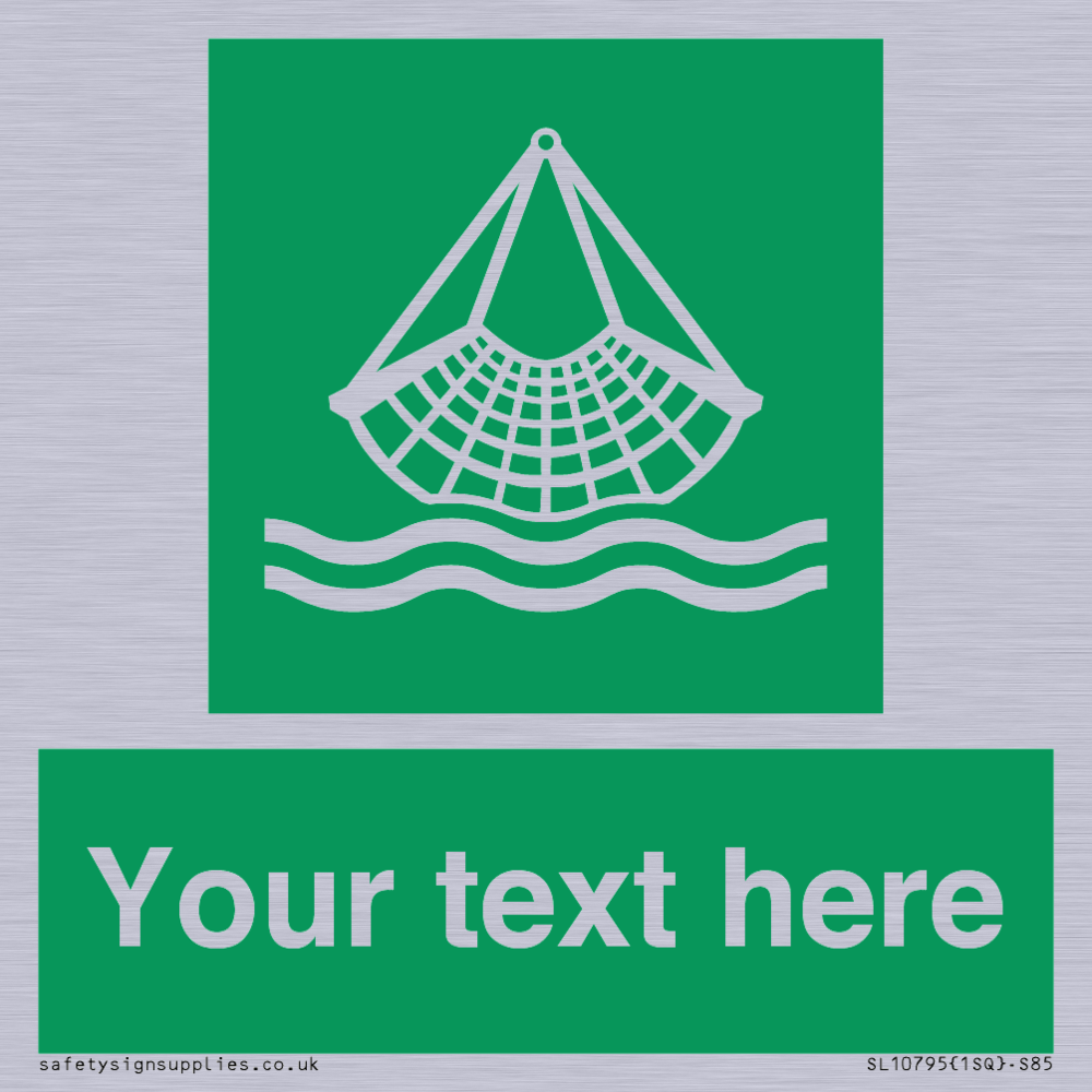 E928 Safe condition: Person overboard equipment symbol. To indicate the location of person overboard / man overboard equipment. Commonly known as a Jasons Cradle.