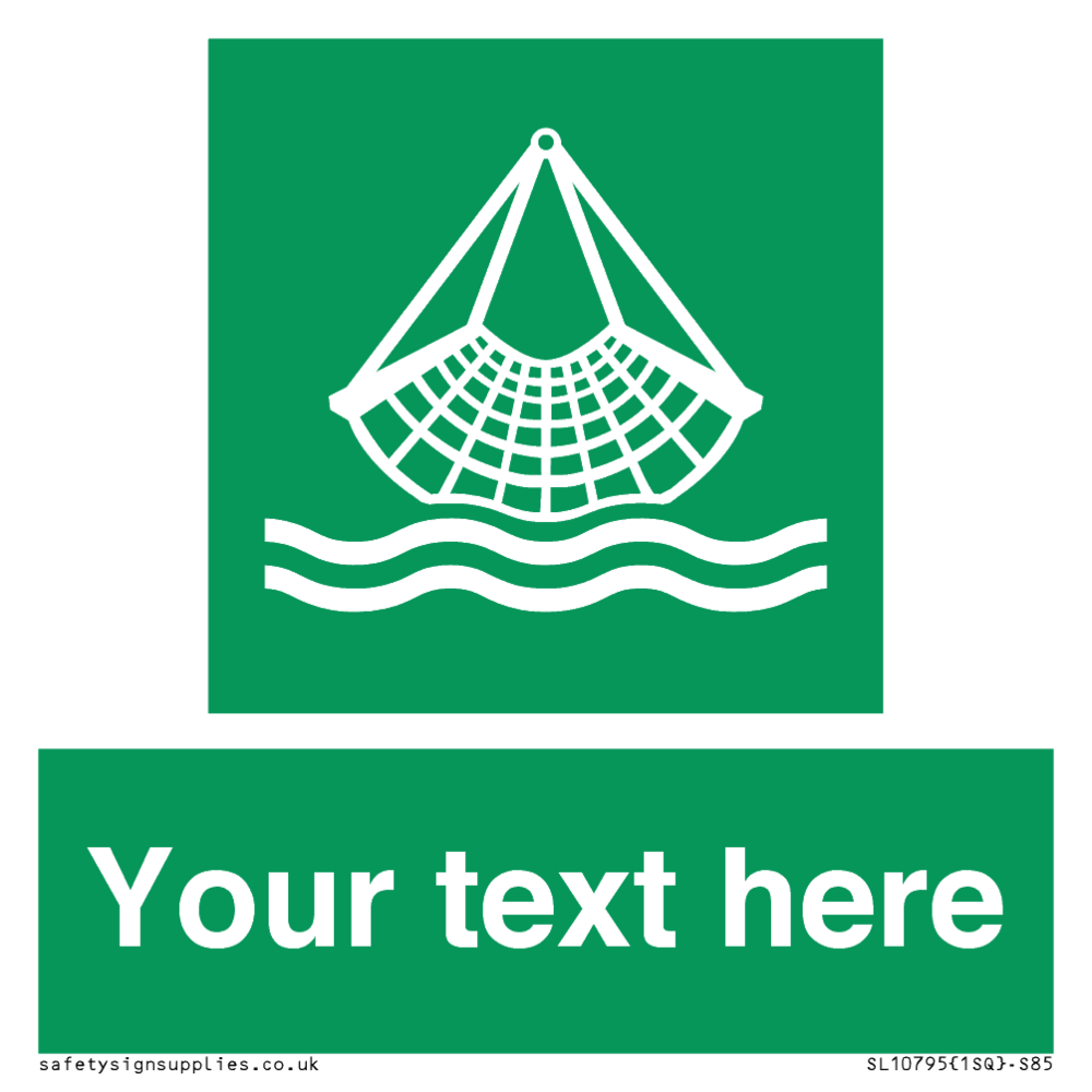 E928 Safe condition: Person overboard equipment symbol. To indicate the location of person overboard / man overboard equipment. Commonly known as a Jasons Cradle.