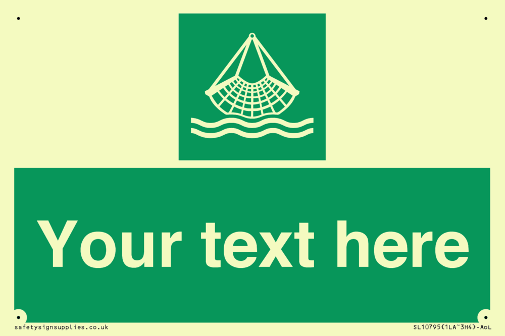 E928 Safe condition: Person overboard equipment symbol. To indicate the location of person overboard / man overboard equipment. Commonly known as a Jasons Cradle.