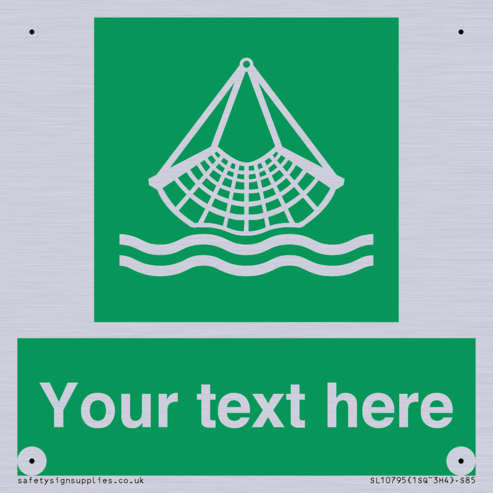 E928 Safe condition: Person overboard equipment symbol. To indicate the location of person overboard / man overboard equipment. Commonly known as a Jasons Cradle.
