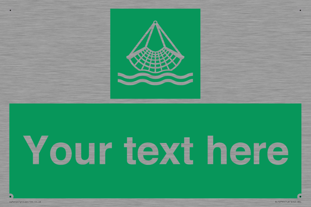 E928 Safe condition: Person overboard equipment symbol. To indicate the location of person overboard / man overboard equipment. Commonly known as a Jasons Cradle.