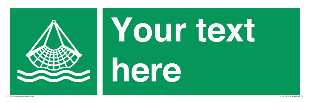 E928 Safe condition: Person overboard equipment symbol. To indicate the location of person overboard / man overboard equipment. Commonly known as a Jasons Cradle.
