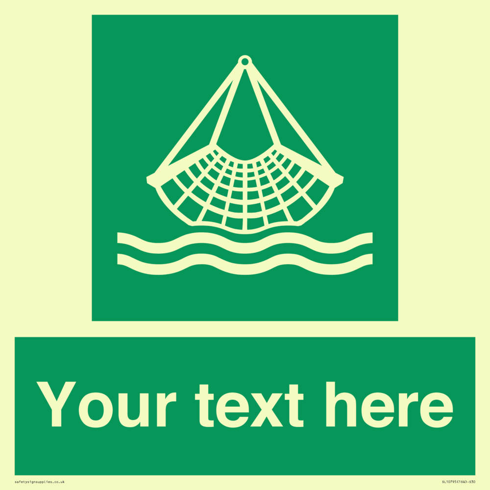 E928 Safe condition: Person overboard equipment symbol. To indicate the location of person overboard / man overboard equipment. Commonly known as a Jasons Cradle.