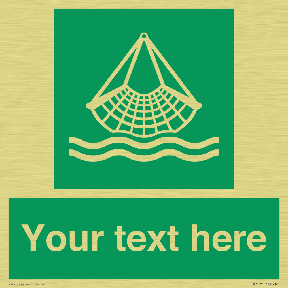 E928 Safe condition: Person overboard equipment symbol. To indicate the location of person overboard / man overboard equipment. Commonly known as a Jasons Cradle.