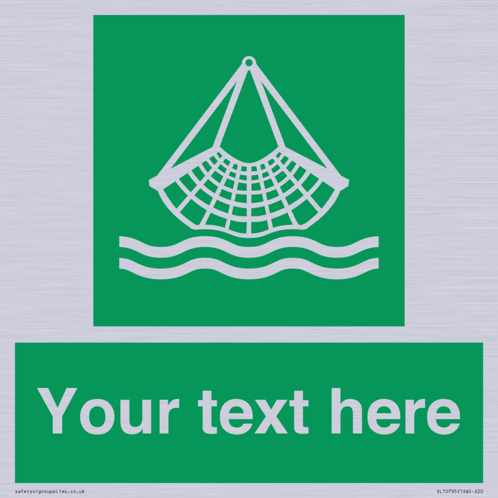 E928 Safe condition: Person overboard equipment symbol. To indicate the location of person overboard / man overboard equipment. Commonly known as a Jasons Cradle.