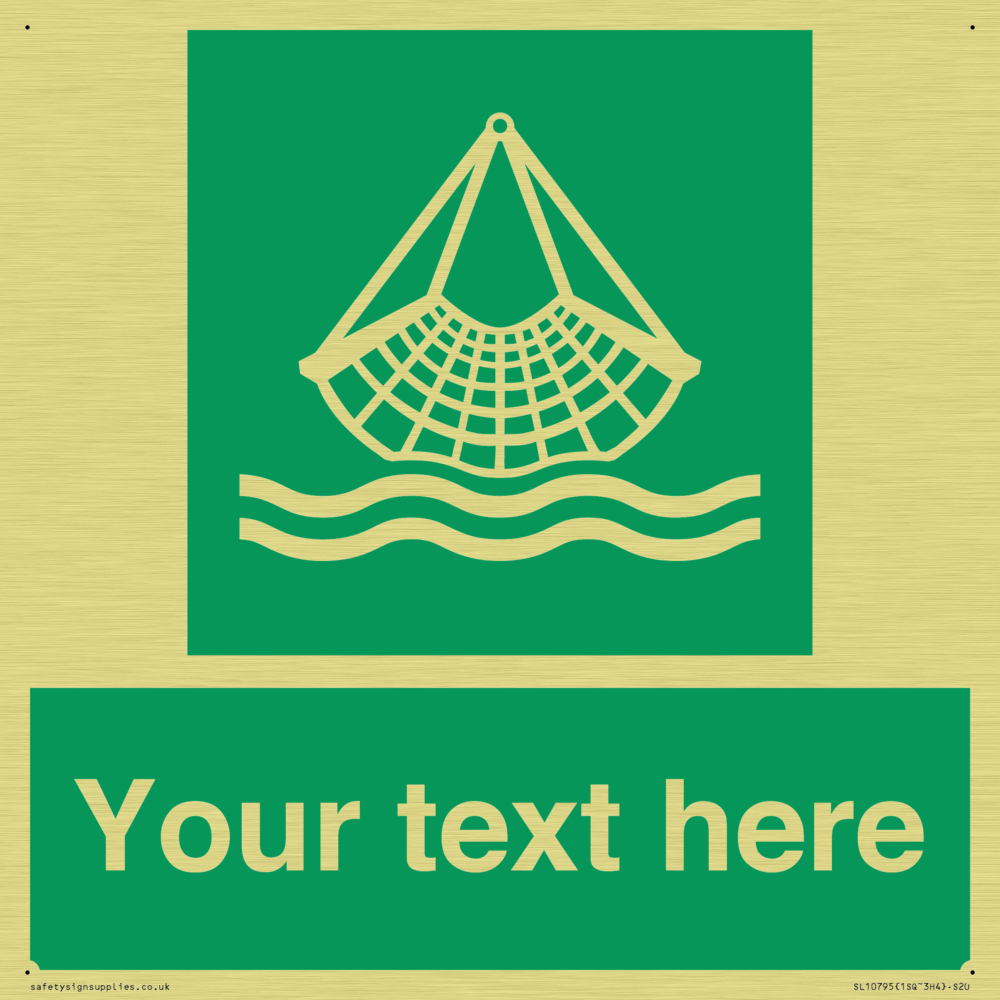 E928 Safe condition: Person overboard equipment symbol. To indicate the location of person overboard / man overboard equipment. Commonly known as a Jasons Cradle.
