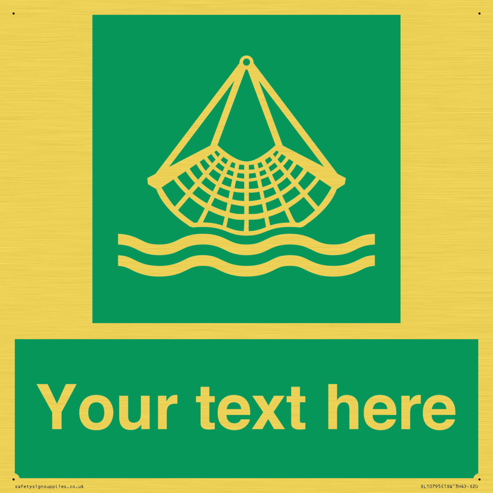 E928 Safe condition: Person overboard equipment symbol. To indicate the location of person overboard / man overboard equipment. Commonly known as a Jasons Cradle.