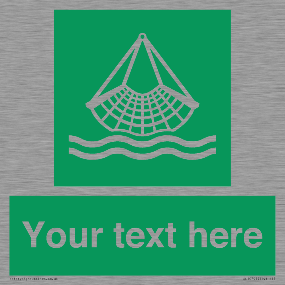 E928 Safe condition: Person overboard equipment symbol. To indicate the location of person overboard / man overboard equipment. Commonly known as a Jasons Cradle.