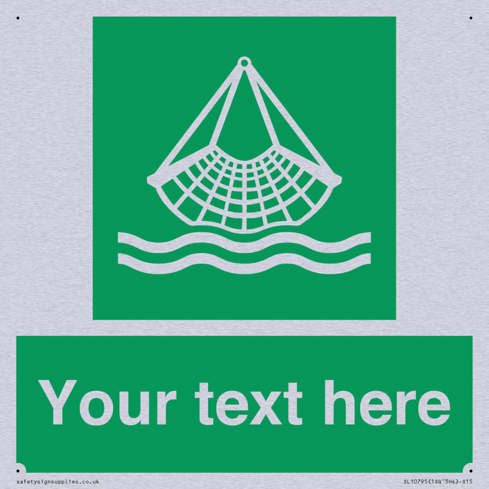 E928 Safe condition: Person overboard equipment symbol. To indicate the location of person overboard / man overboard equipment. Commonly known as a Jasons Cradle.