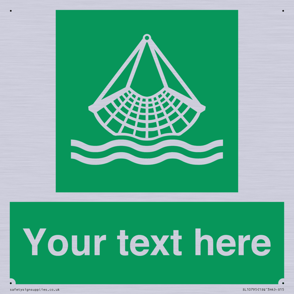 E928 Safe condition: Person overboard equipment symbol. To indicate the location of person overboard / man overboard equipment. Commonly known as a Jasons Cradle.