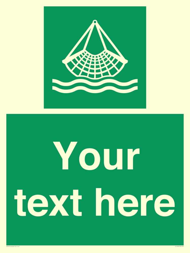 E928 Safe condition: Person overboard equipment symbol. To indicate the location of person overboard / man overboard equipment. Commonly known as a Jasons Cradle.
