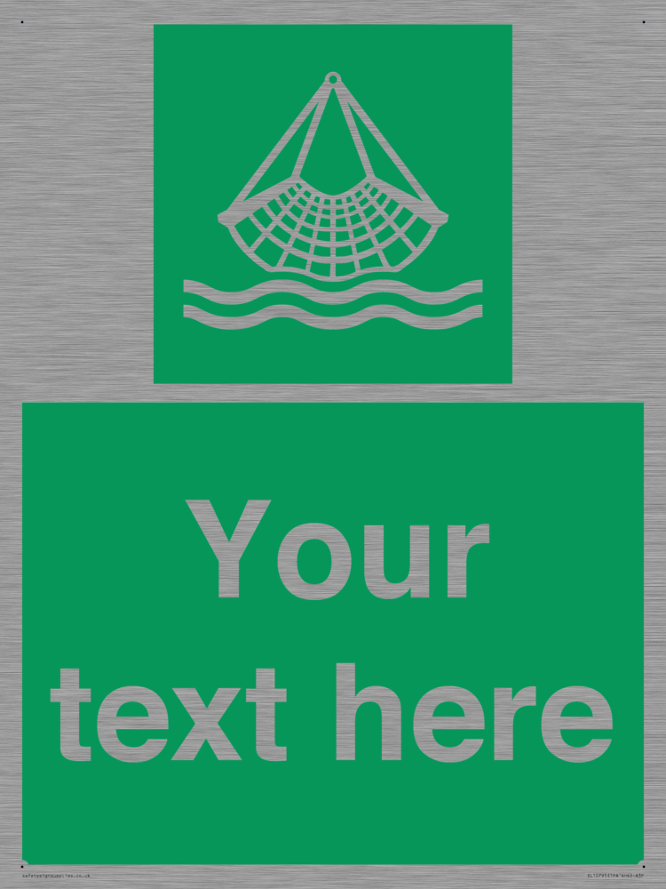 E928 Safe condition: Person overboard equipment symbol. To indicate the location of person overboard / man overboard equipment. Commonly known as a Jasons Cradle.