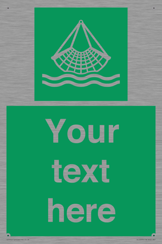 E928 Safe condition: Person overboard equipment symbol. To indicate the location of person overboard / man overboard equipment. Commonly known as a Jasons Cradle.