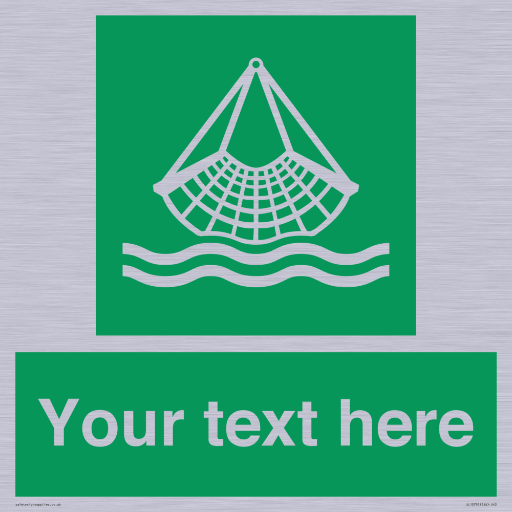 E928 Safe condition: Person overboard equipment symbol. To indicate the location of person overboard / man overboard equipment. Commonly known as a Jasons Cradle.