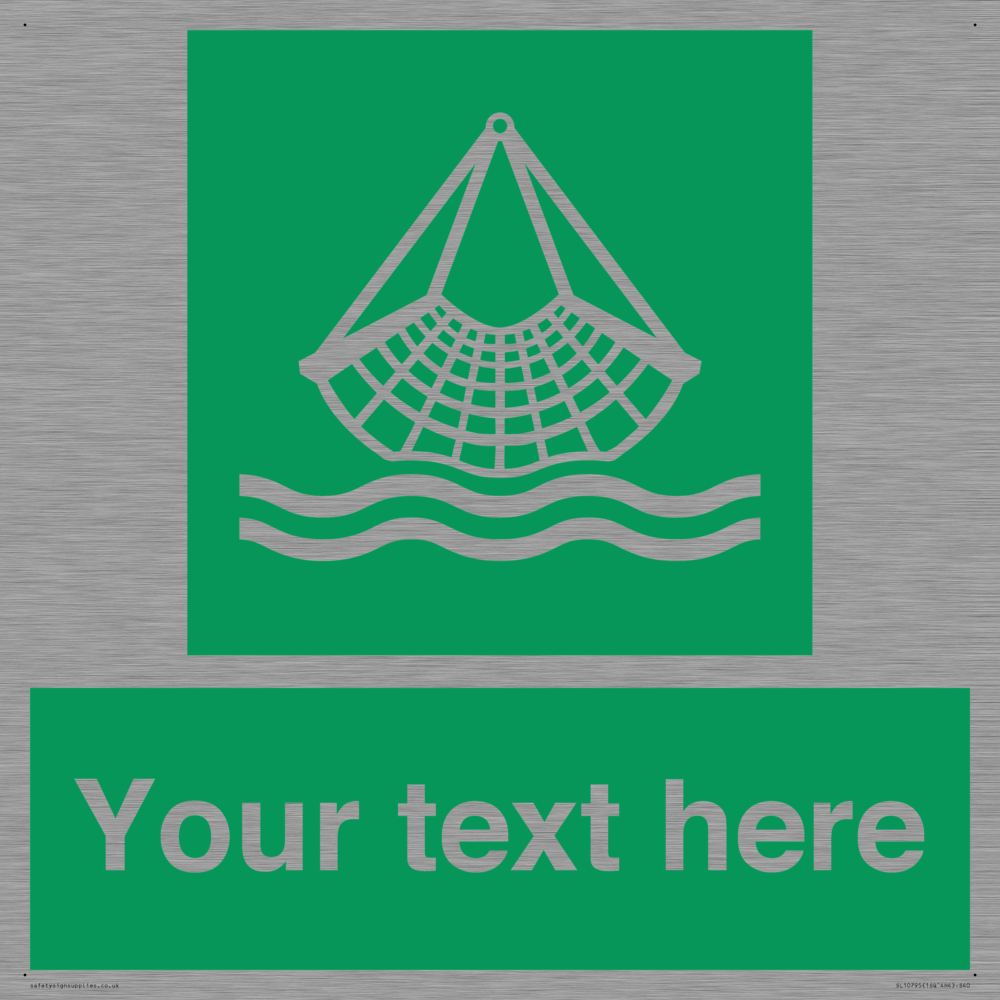 E928 Safe condition: Person overboard equipment symbol. To indicate the location of person overboard / man overboard equipment. Commonly known as a Jasons Cradle.