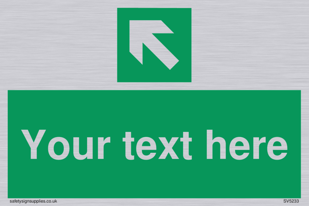 This sign contains an arrow pointing diagonally up and left.