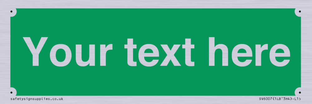 Sign Text: Your text here Dimensions: 150x50mm Material: Plastic Semi-rigid Silver Text Colour: White Background Colour: Green Thickness / Depth: 1.6mm More...