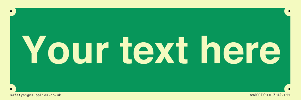Sign Text: Your text here Dimensions: 150x50mm Material: Plastic Semi-rigid Photoluminescent Text Colour: White Background Colour: Green Thickness / Depth: 1.4mm More...