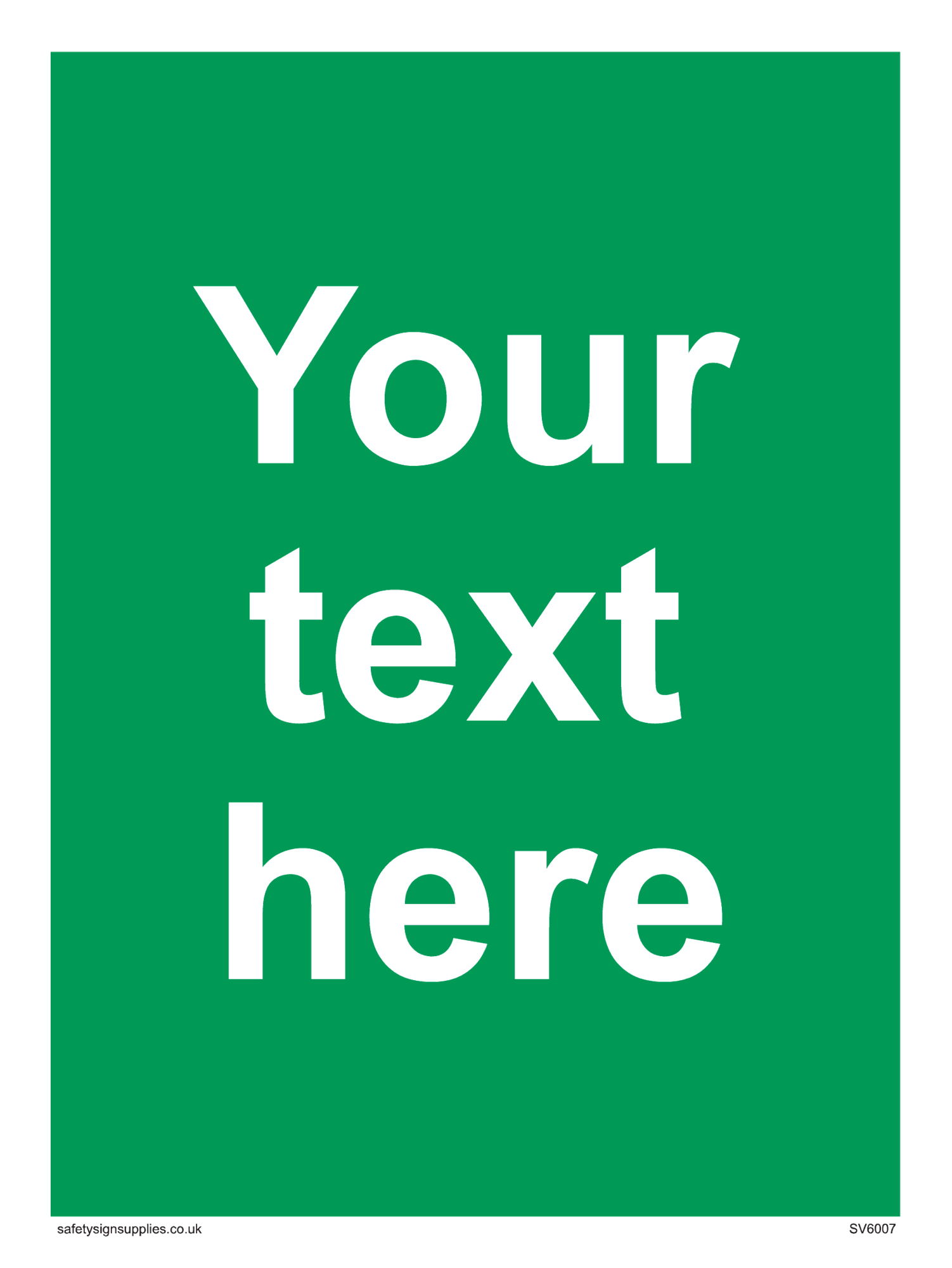 Suitable for mounting on a door. Suitable for mounting on cladding. This product is design to be mounted on the ceiling. Custom signs contain the text required by the customer. With your your text and a standard safety sign symbol - a bespoke sign can fit any requirement. Signs in this range are from our maximum choice range. Giving you the most choice of signs available in the UK.